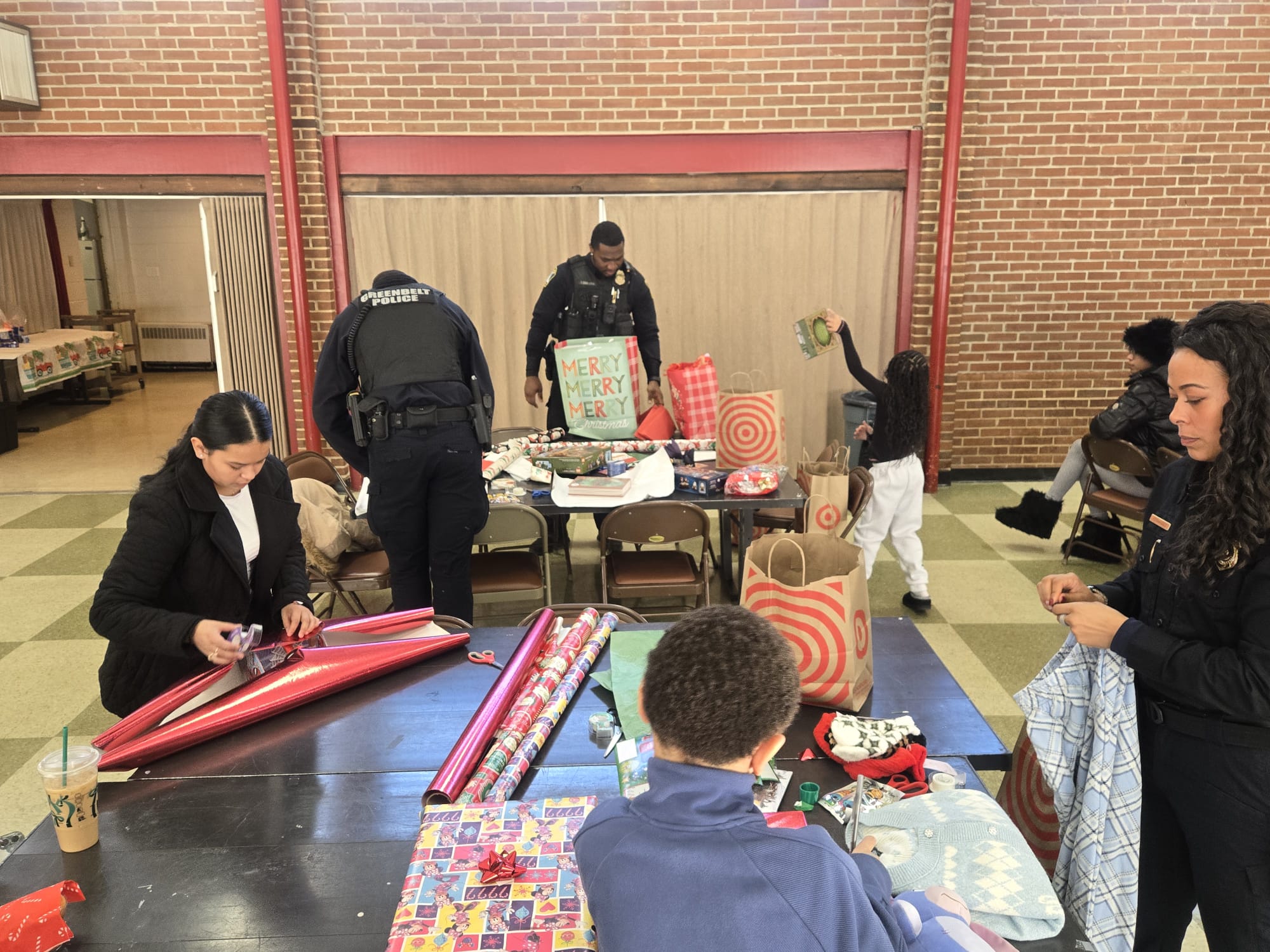 This event served as the sequel to the earlier check presentation, where donor contributions were formally provided to support the Greenbelt Police Departmentโs annual Shop-with-a-Cop initiative. Following the shopping experience, NAS Pentagun Deck volunteers joined Greenbelt Police officers and other community partners in a dedicated gift-wrapping session to prepare the purchased items for distribution to participating children.