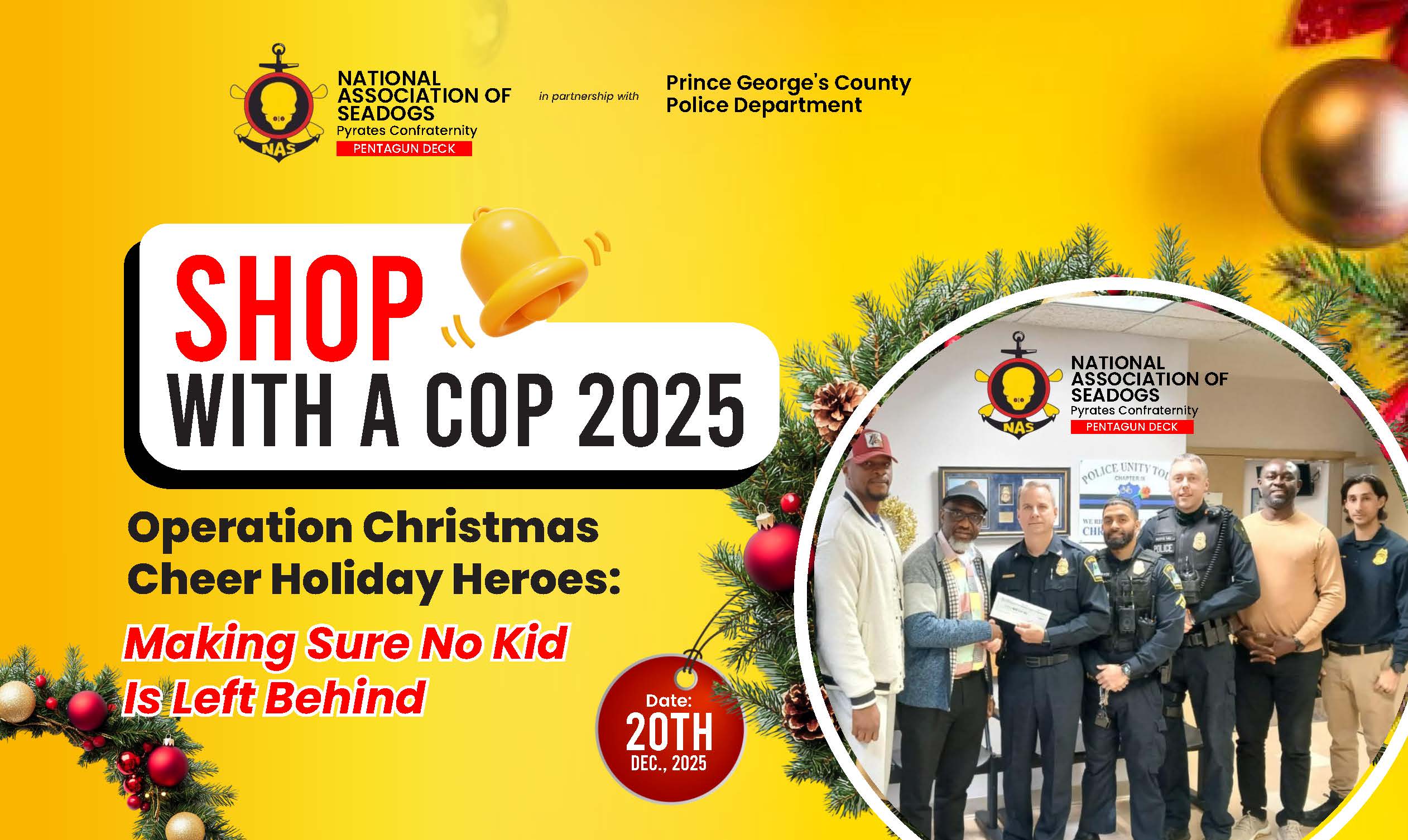 The holiday season is approaching, and the National Association of Seadogs (Pyrates Confraternity), Pentagun Deck, is thrilled to announce our continued partnership with the Greenbelt Police Department in Maryland, USA, for our annual “Shop with a Cop” initiative!